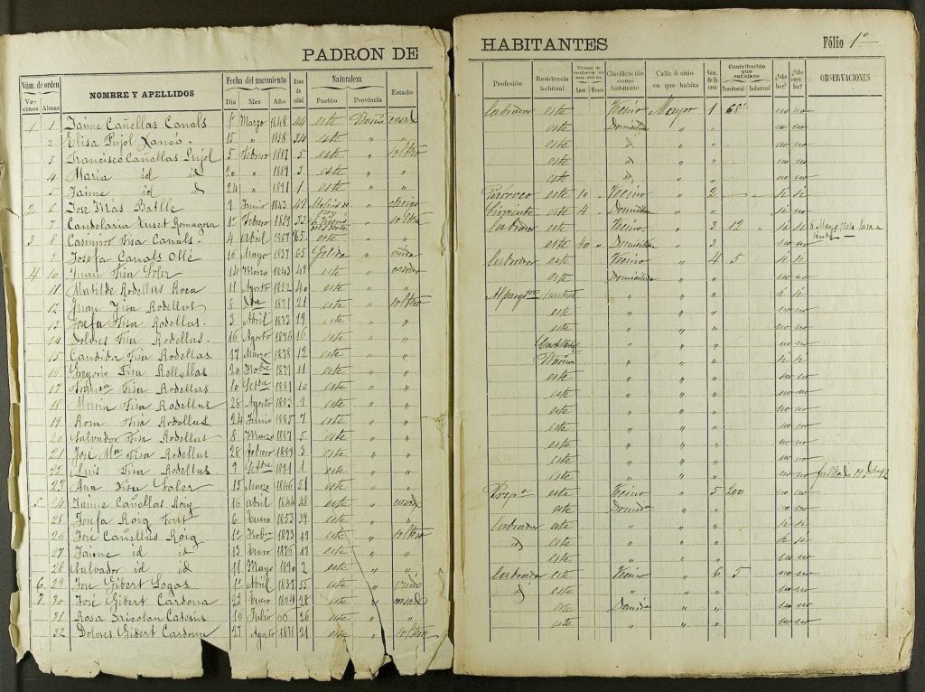 socials històriques a partir de la vinculació dels habitants registrats en els padrons i en d’altres
